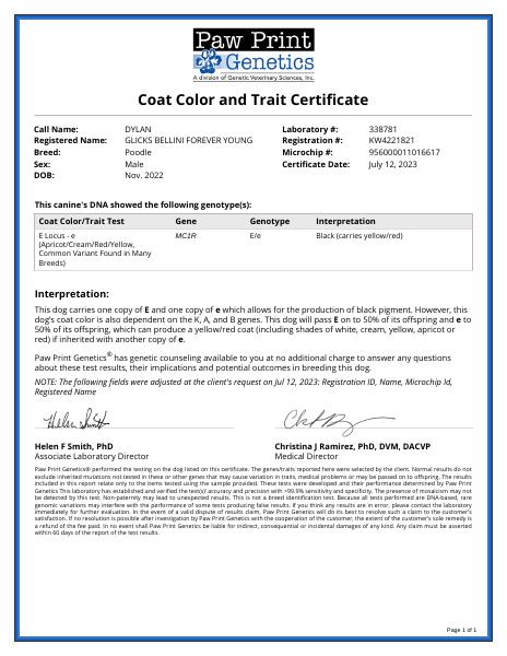 E Locus Gensol, Carries 1 copy Red Gene OFA